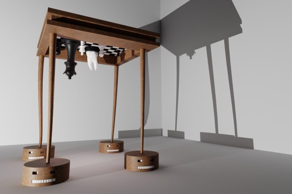 Entre esculturas, dibujos y pinturas, la exposición “Aduana del Juicio Final” invita a cruzar un umbral: el que conecta la obra material con una dimensión virtual. Gracias al desarrollo de A4E, los visitantes pueden ingresar a este universo digital a través de visores de realidad virtual y experimentar las obras desde adentro.
